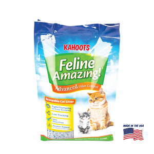 Kahoots Feline Amazing! Advanced Odor Control cat litter is made from all natural Sodium Bentonite Clay. For even more odor control we've added Zeolite, well known for its ability to safely and effectively eliminate litter box odors. Plus, Zeolite naturally reduces ammonia build up for long lasting odor control which is great for multi-cat households. Made and sourced in the USA.