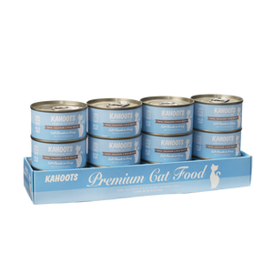 Only the safest and highest quality ingredients make it into every premium can of our Kahoots Gourmet Fillet recipes. For months, our development team scoured the globe for the most ethical suppliers with the freshest ingredients. That’s what led us to Thailand. Our supplier’s seafood is dolphin safe, wild caught, never frozen, and goes straight from vessel to processing to enhance both freshness and flavor. But it wouldn’t matter how nutritious our food is if your cat won’t eat it, so we perform extensive palatability comparisons to identify what types of fish are most palatable. As a result, only the most scrumptious recipes have made it through our tasting panel of fussy cats. Bon appétit! (3 oz, Case of 12)