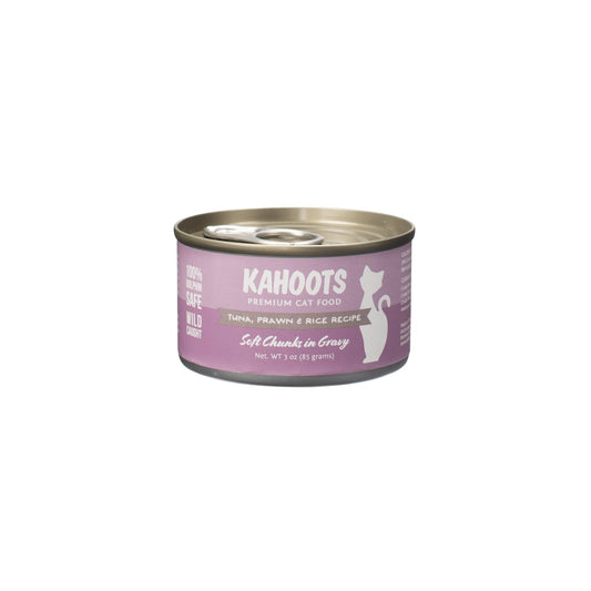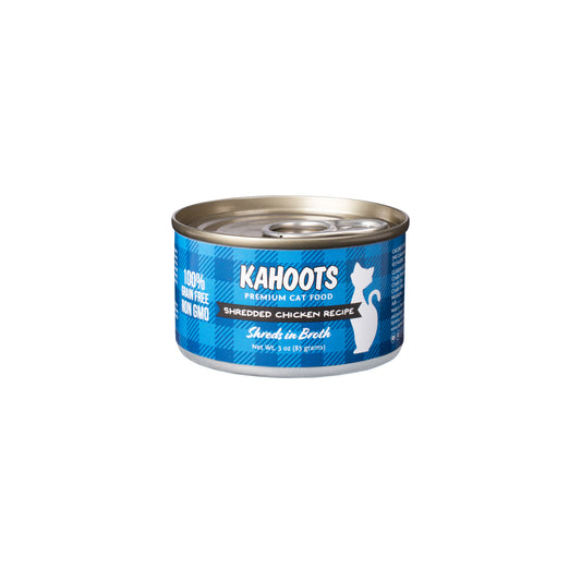 While dry cat food is tasty and convenient, wet cat food is the healthiest option for both cats and kittens. Cats get the vast majority of their moisture from their diet, which means a diet of wet cat food, high in moisture and high-quality ingredients, will keep them hydrated and help to prevent any UTI issues from developing. Wet cat food is also much easier for your cat to digest. Because we know cats can be picky when it comes to their food, we offer a wide range of different formulas that can be used as either adult food or kitten wet food. Whether you need a kitten wet food made of chicken or chunky wet cat food with a whole sardine in the can, we’re confident your cat will find something to love with our Kahoots wet cat food.