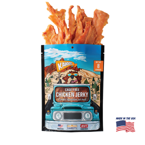 Our chicken jerky is made purely from cured, human grade, cage-free chicken breast that's raised, sourced, and air dried in the USA. It is also naturally grain and gluten free. Our chicken jerky is a single protein; Chicken Breast, Vegetable Glycerin, Vinegar Powder, Rosemary Extract. 100% natural & 100% healthy. Our jerky is high in protein and low in fat. Single source proteins make accommodating allergies easy.