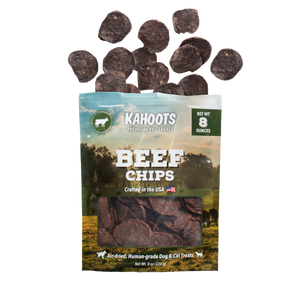 Our beef chips are single ingredient treats made from beef heart. Heart treats are a great source of taurine which is also great for your pets heart health.