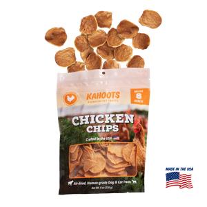Our chips treats are air dried & low in calories. They are USA made, minimally processed & 100% human grade. Minimal processing means irregular sizes. Feel free to use the smaller bits as a nutrient-dense food topper for extra treating.