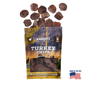 Your hand rests inside your favorite bag of chips, waiting to deliver another payload of guilty goodness. As you ponder your life choices, you lock eyes with your pet and try not to think about the drool flowing down your leg. We know, you're conflicted. Wouldn’t you love to share? But that's not healthy... for pets. Introducing Kahoots’ solution, our Air Dried Chips! These bite-sized delights are crunchy, single-ingredient, and tasty enough to keep your pup salivating through the most brutal home-team loss. We kept 'em low-cal, too! So when they can't keep their paws out of the bag, you don't have to worry about fitting in that extra session of pet yoga. Great for both dogs and cats! (8 oz bag)